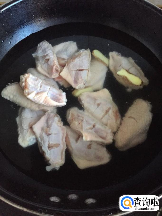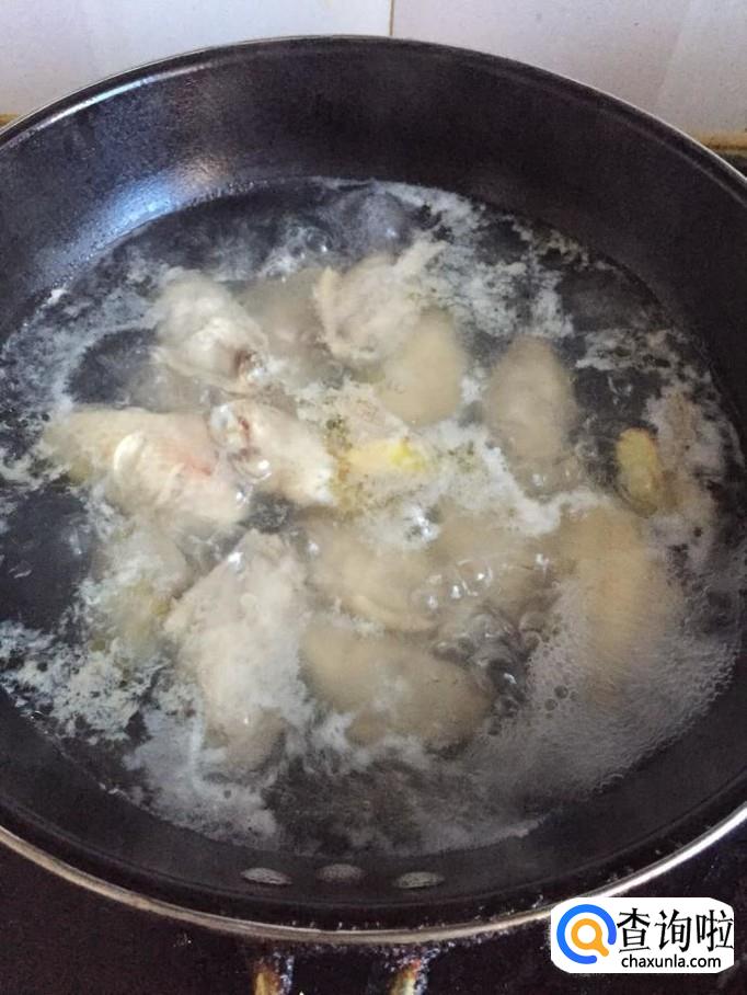 锅中加入适量水,放入鸡翅,和两篇姜片去腥,水开后捞出,冷水冲洗血末,控干水分备用。