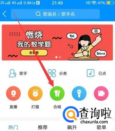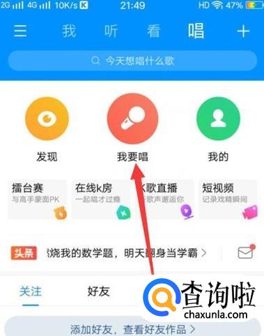 进入之后,点击“我要唱”,进入下一页面,如图所示。
