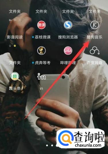 打开手机,找到酷狗音乐,点击并进入,如图所示。