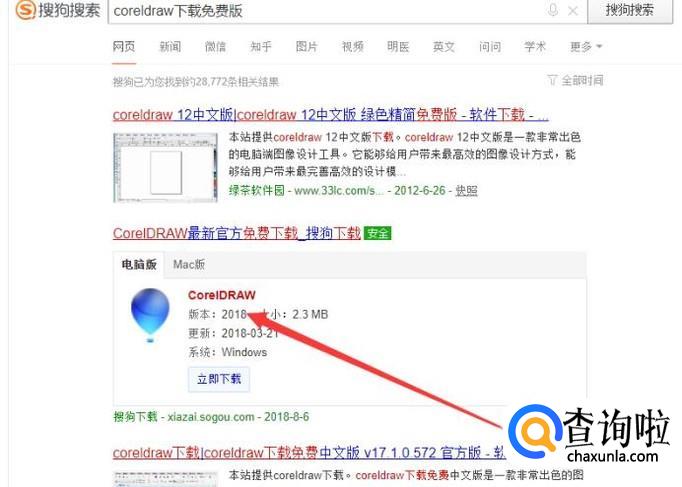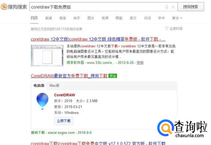 在搜索框中填入“CorelDRAW下载”,点击“搜索”,进入搜索结果页面,如图所示。