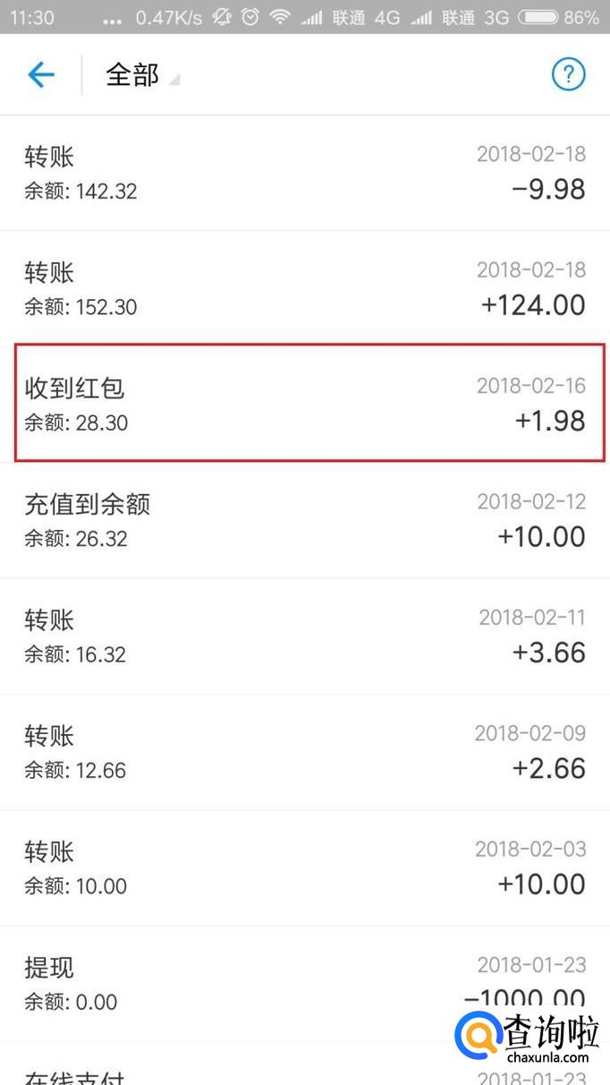 在资金明细中,如果你曾经抢到了红包,可以看到红包收入信息记录。