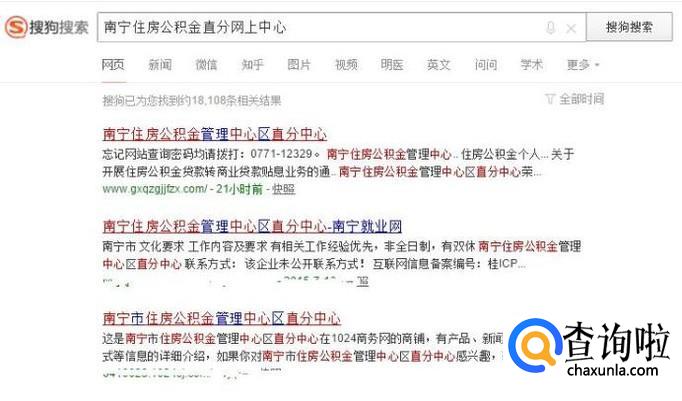 搜狗搜索该网站南宁住房公积金直分中心,如图所示。进入南宁住房公积金直分网上中心。