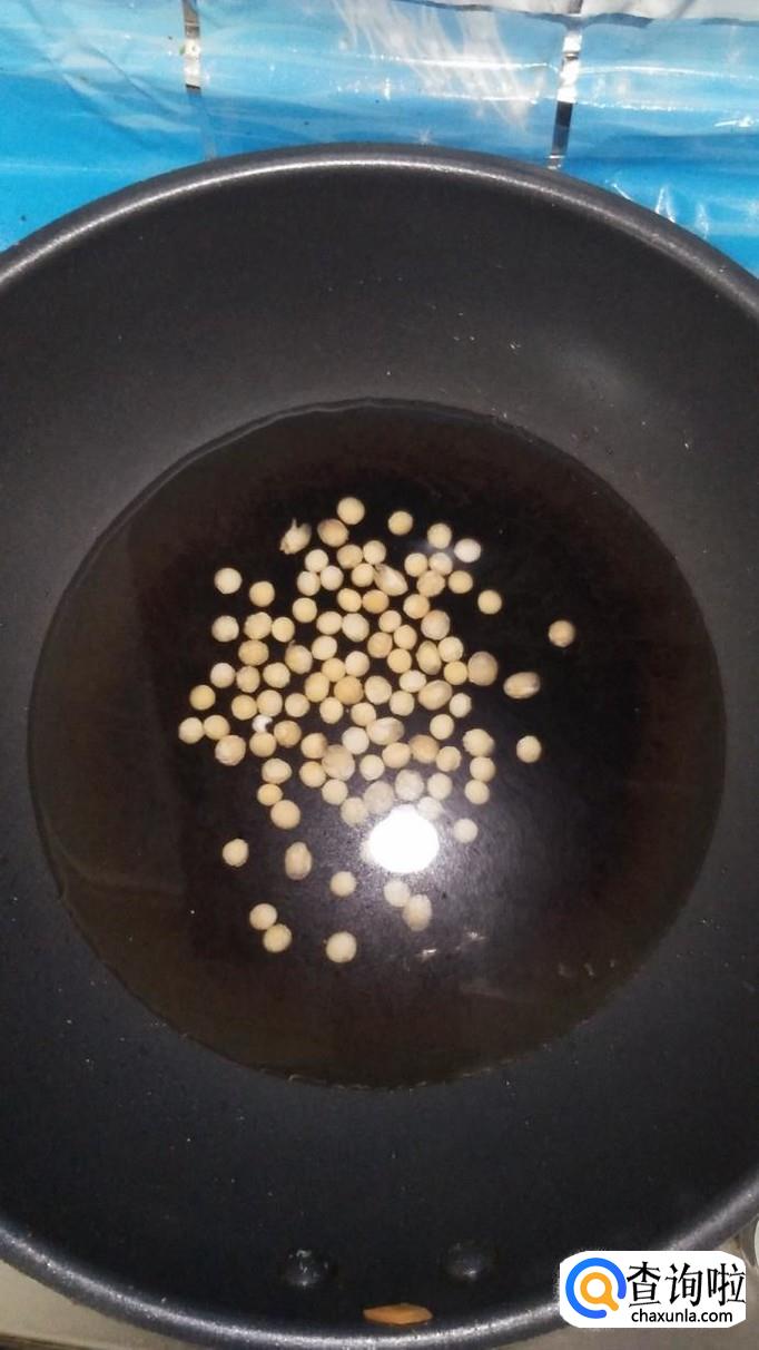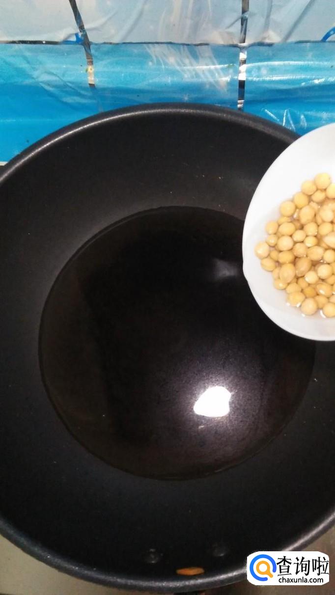 黄豆用清水泡发,放入锅中煮熟,泡发过的黄豆比较容易熟,可以在睡觉前,将黄豆提前泡上,早上起来黄豆就泡开了。