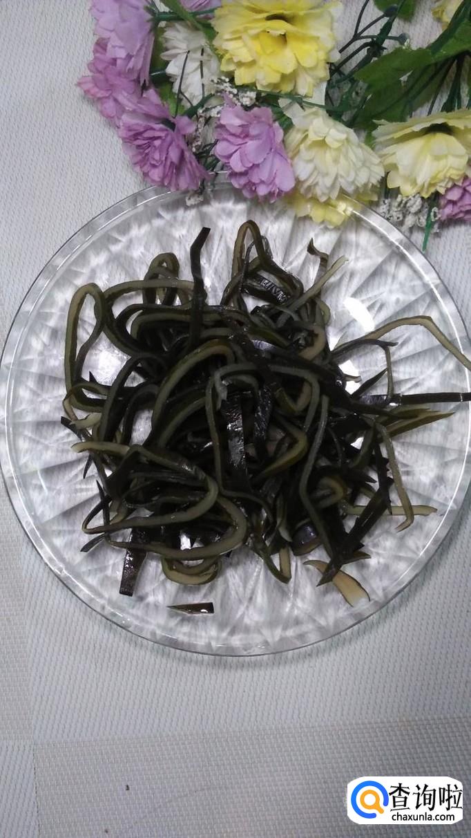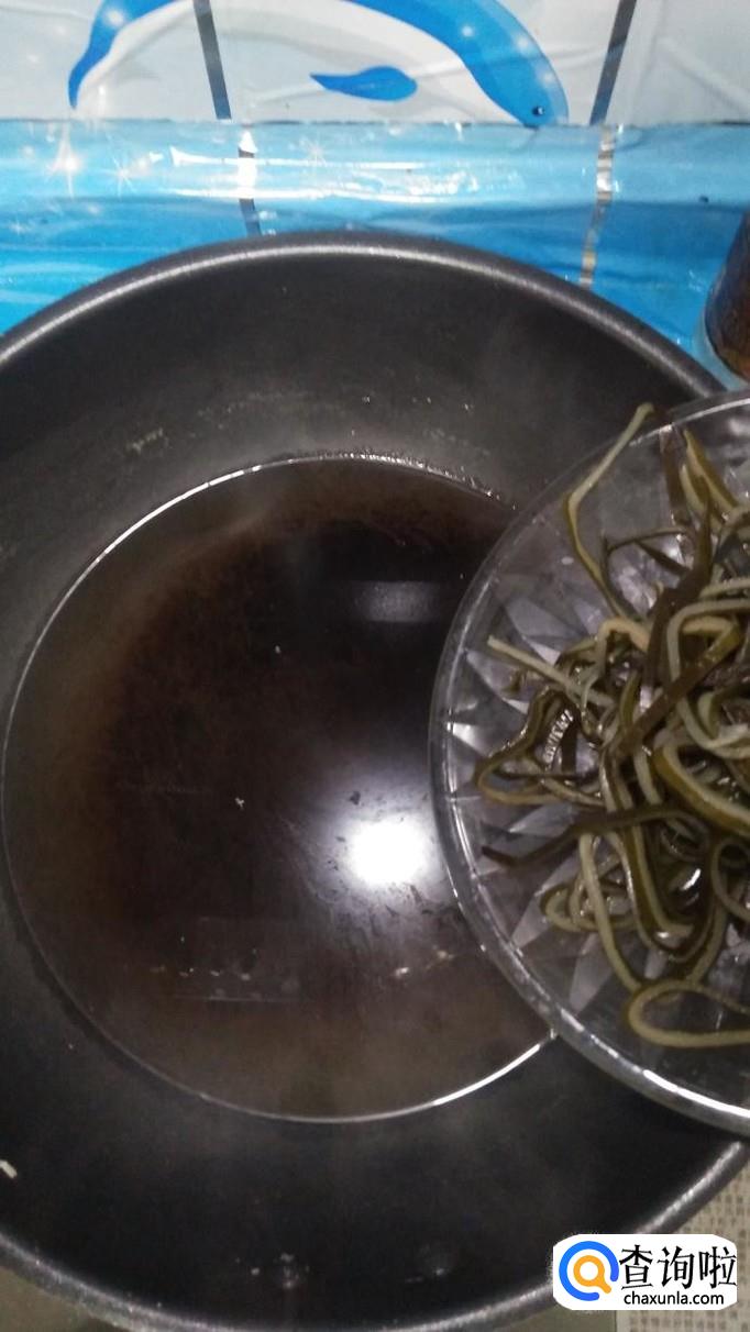 准备适量海带,泡发后切成丝,放入锅中焯水,焯过水的海带,可以有效去掉海带上面的粘液,口感更加清爽。
