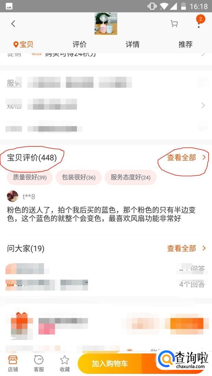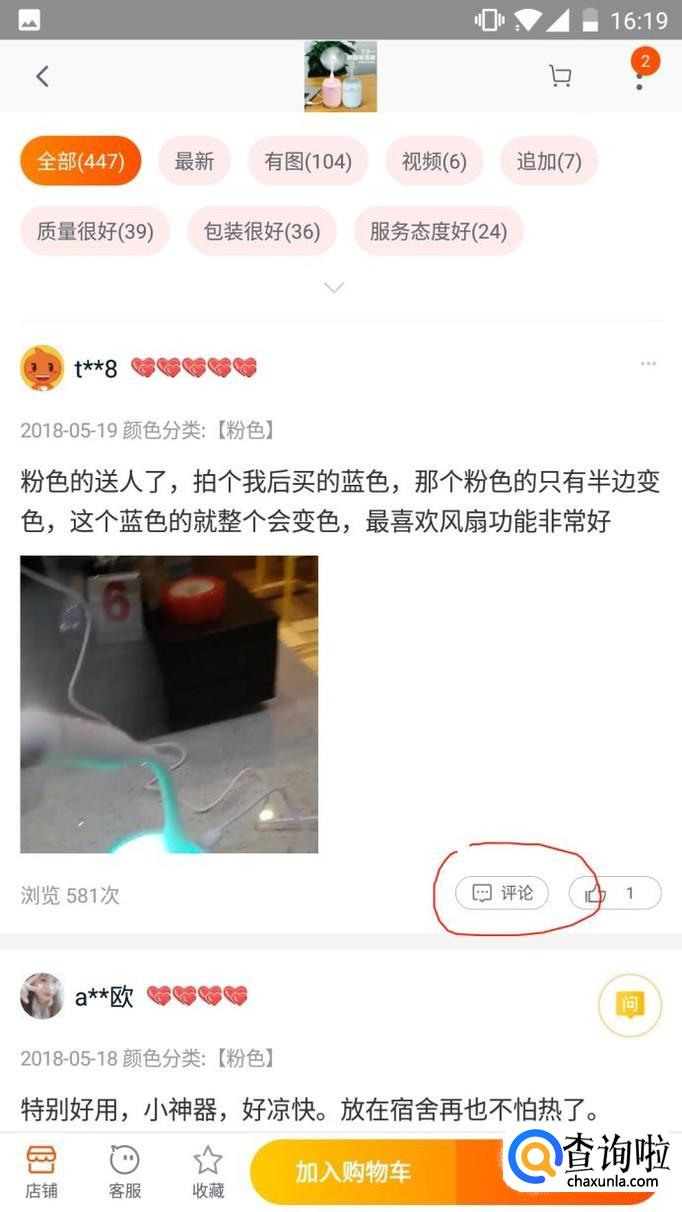 点击评论,即是对其他买家发表的评论提出自己的问题,可以问他质量或者其他