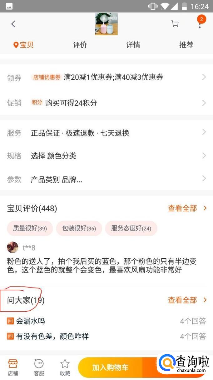 或者在商品首页,拖拉到下方,有“问大家”,点击进去