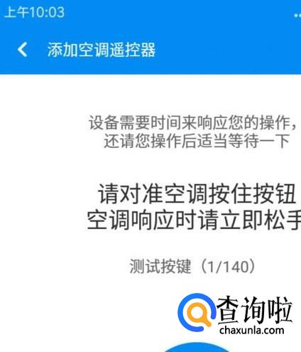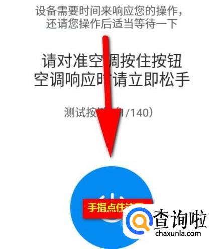 手指轻点一下品牌名字;这就转到了操控界面。界面中间位置显示着一个按钮。手指点住这个按钮,手机则对着空调,等空调起了反应,再松开手。那么,空调就进入到工作状态了。