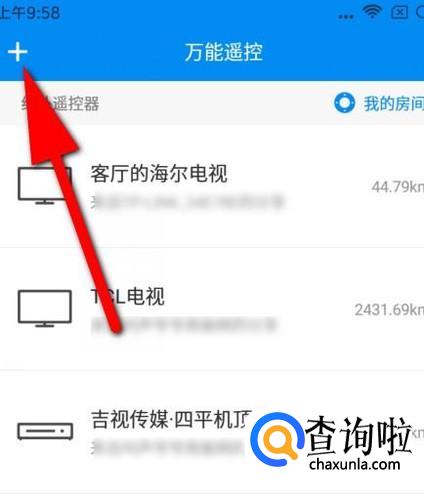 手指轻点一下“万能遥控”,转到另一个界面,手指再点左上角的+号