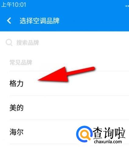 转到选择空调品牌的界面;在这里,选择要遥控的空调牌子。