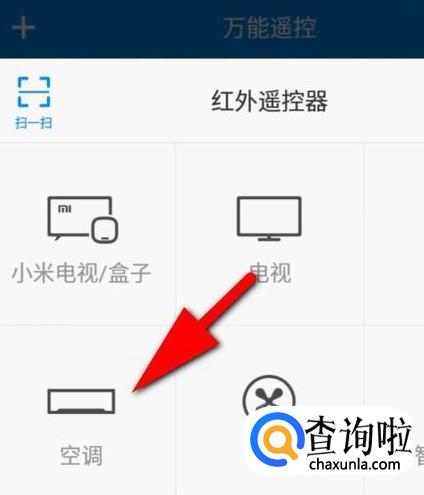 在打开的页面中,选择你想要遥控的设备,比如,空调;那么,手指轻点一下“空调”。
