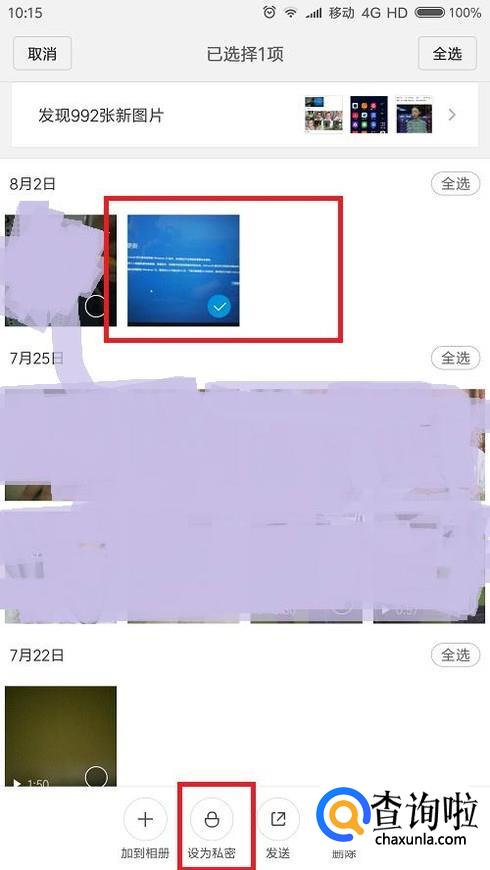 长按选中之后,你可以看见手机下方出现了“设为私密”的选项,点击该选项;