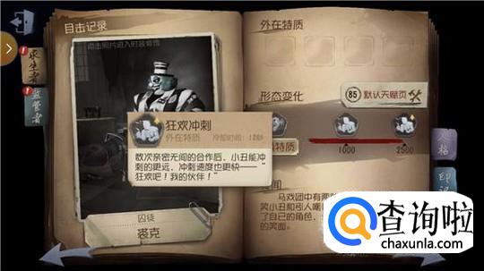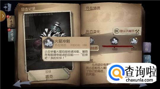 首先我们要熟悉一下小丑在获得一定存在感以后所拥有的技能。火箭冲刺:小丑举着他的火箭快速向前冲刺,摧毁所有阻碍他前进的目标。拥有更多的存在感后会获得加强版的冲刺:小丑的冲刺速度会变得更快,让敌人无处可逃。