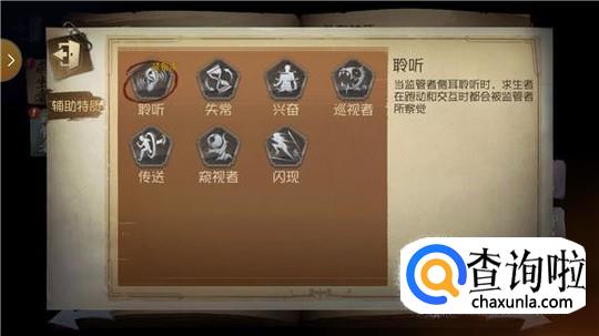 如果还刚玩这个游戏不久,还处在比较低端的位置,那么还是建议带聆听:当监管者侧耳聆听是,求生者在跑动和交互是都会被监管者所察觉。在低端局,很多玩家都不懂及时的不动来躲过聆听,因此在不熟悉地图的情况下监管者带这个特质可以很快的获取求生者的位置。