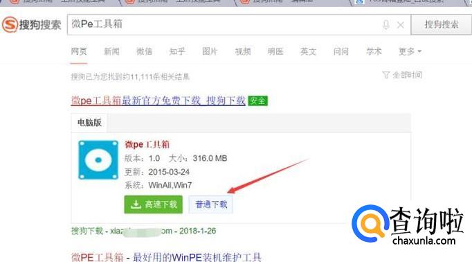 在搜索的结果中找到软件,点击普通下载,将其下载到电脑并安装。