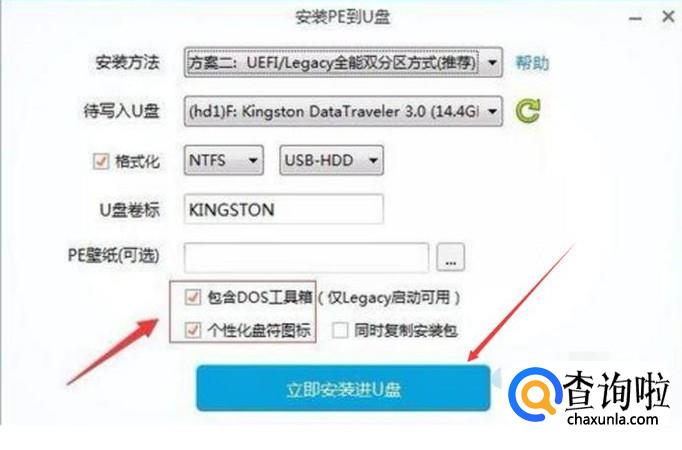 选择好要制作启动盘的类型和方案,点击立即安装进u盘即可。