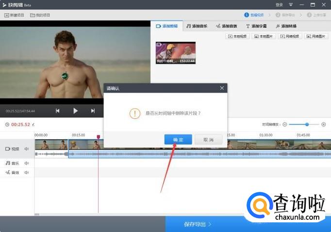 如下图,我剪辑截取了电影的中间一小段,然后把不需要的片段选中,按键盘上的【Delete】删除,只保留我需要的那一个片段。
