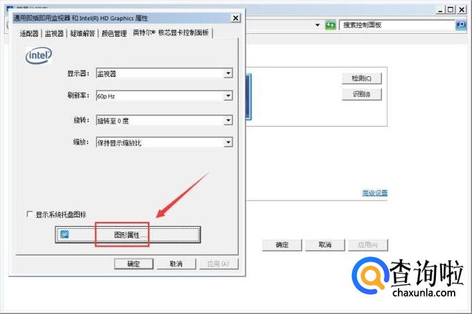 点击因特尔核心显卡控制面板选项,在弹出的对话框内找到图形属性选项,如图所示: