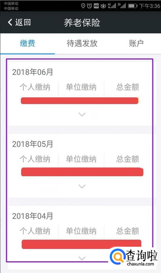 我们点击进去的话,可以看到我们详细的每个月的缴纳的养老保险金额的,如图所示。