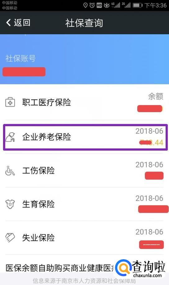 登录进入后,我们就可以看到养老保险了,如图所示;
