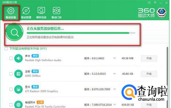 以360驱动大师为例,进入360驱动大师界面,点击驱动安装。会自动扫描电脑的驱动状况。