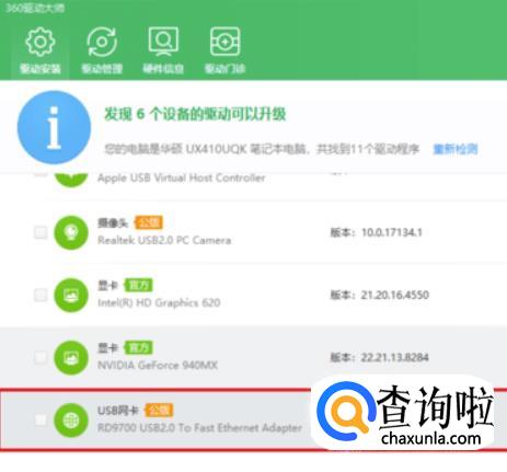 扫描后系统会显示你需要安装USB网卡驱动,点击安装即可。