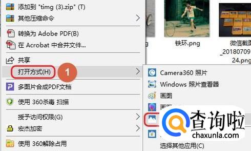 接下来找到我们要配音乐的那张图片,选中之后点击鼠标右键选择“打开方式”-“照片”;