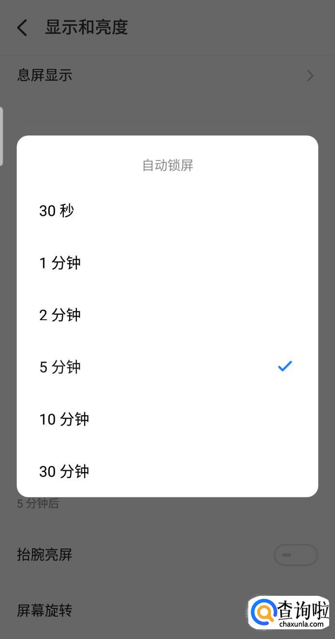 拉到最低,这里就可以设置息屏时间了,点击“自动息屏”