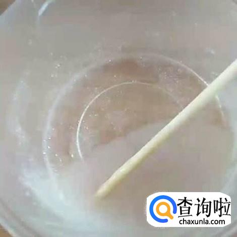 然后不停的搅拌,挑选出成型的水晶泥,把多余的水分过滤掉,然后用手捏一捏,根据自己的需要来调整。