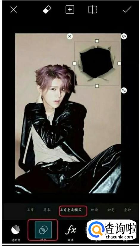 第三步: 把素材放到合适的位置然后点击混合正片叠底模式。