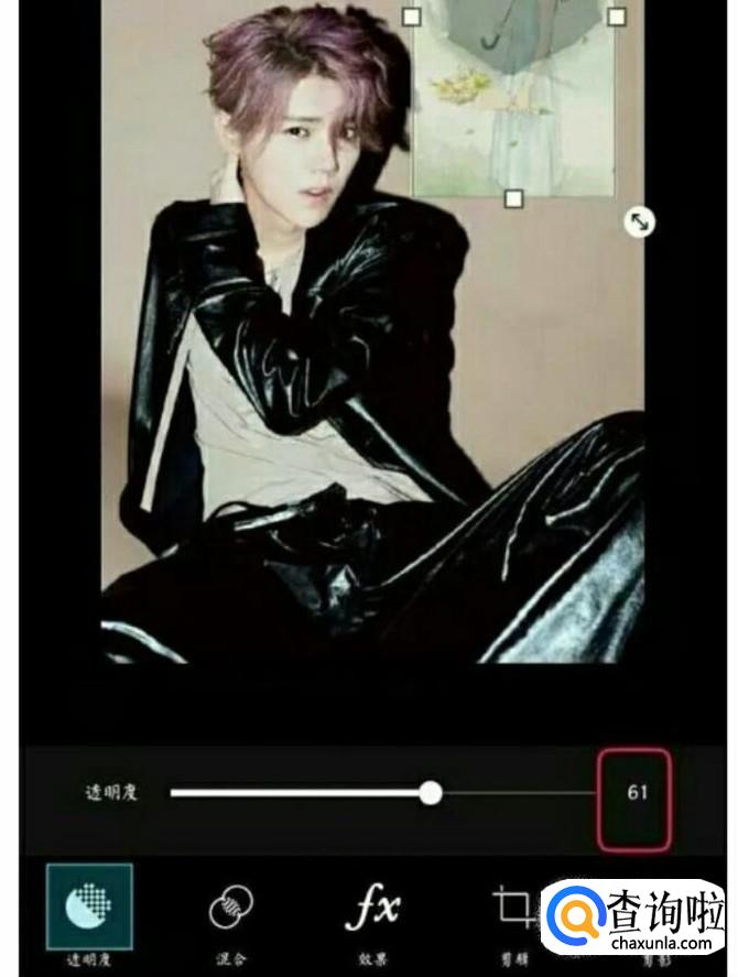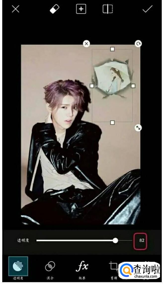第五步: 照片位置摆好。调透明度。能看见底图。