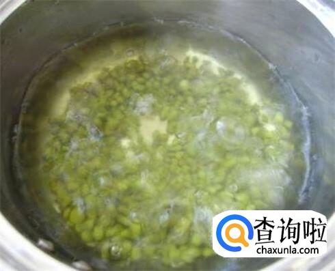 锅里放入适量的水,把绿豆倒入锅中,大火煮,把绿豆给煮开壳。