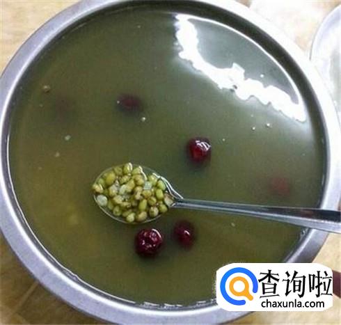 然后再把泡好的红枣放入锅中,加入适量的盐,再小火煮开,把红枣味给煮出来,绿豆汤就做好了。