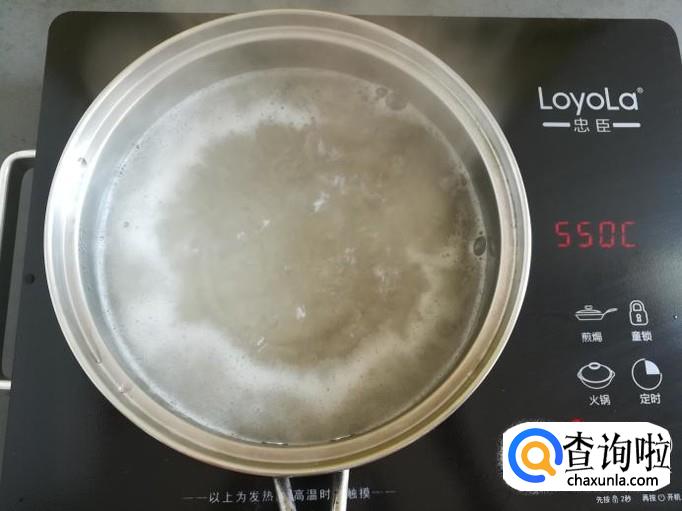 锅中加入适量的水 ,水开后,慢慢的向其中倒入白凉粉,不停的搅拌直至成粘稠状,关火。