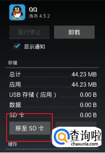 点击进入“QQ”以后,我们可以看到下方的“移至SD卡”。