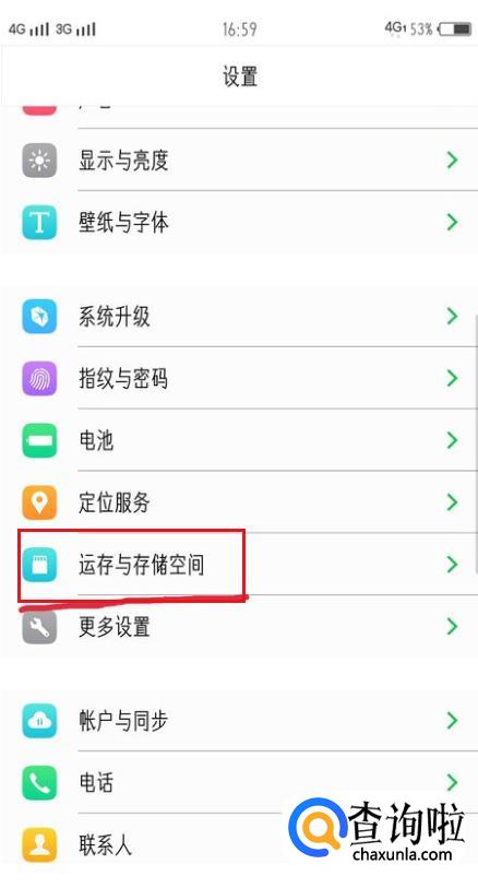点击进入“设置”以后,我们找到“运存与存储空间”。