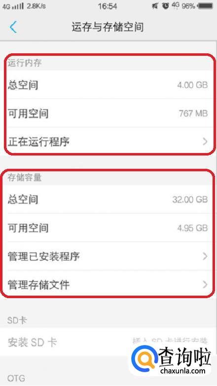 点击进入“运存与存储空间”,找到“管理已安装的程序”。