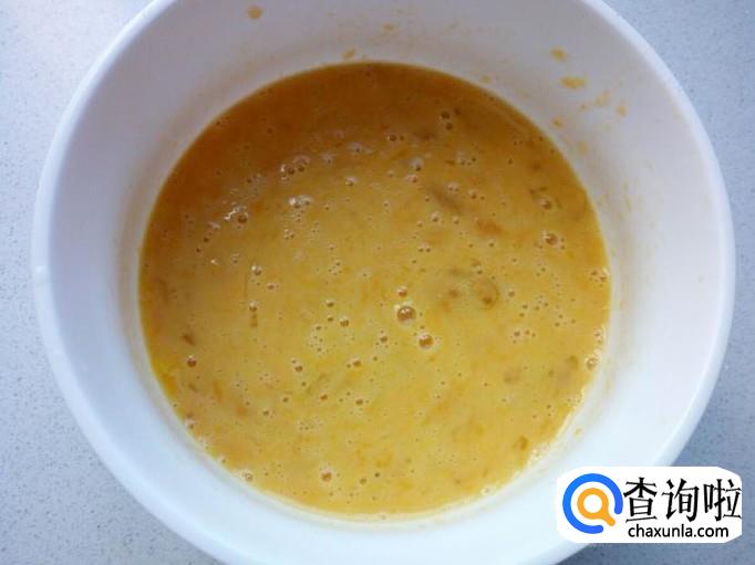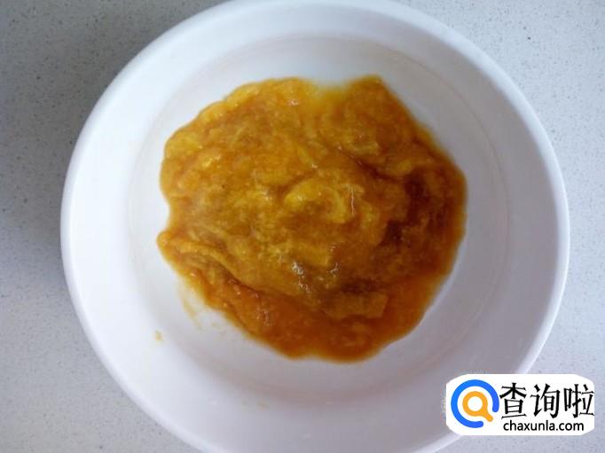把鸡蛋同芒果肉一起搅拌均匀(也可以根据个人喜好的口味,添加些牛奶)。
