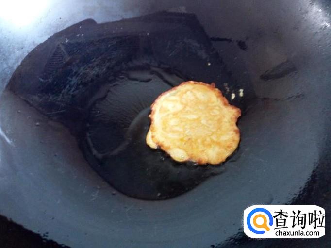 锅内放入少量的油加热,油热后放入一匙儿调和好的芒果鸡蛋面糊,小火煎塌。不要把面糊一次全部倒入锅中,因为含糖成分的面糊,容易糊锅,而且也不易翻面。