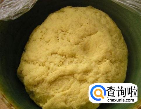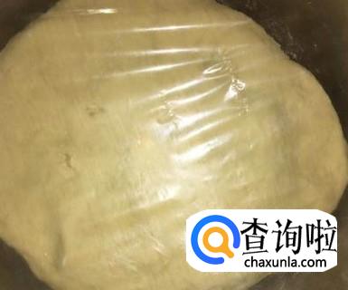 用筷子搅成块后,用手揉成软硬适中的团,盖上保鲜膜醒面团。醒面的目的是让饼子更松软。