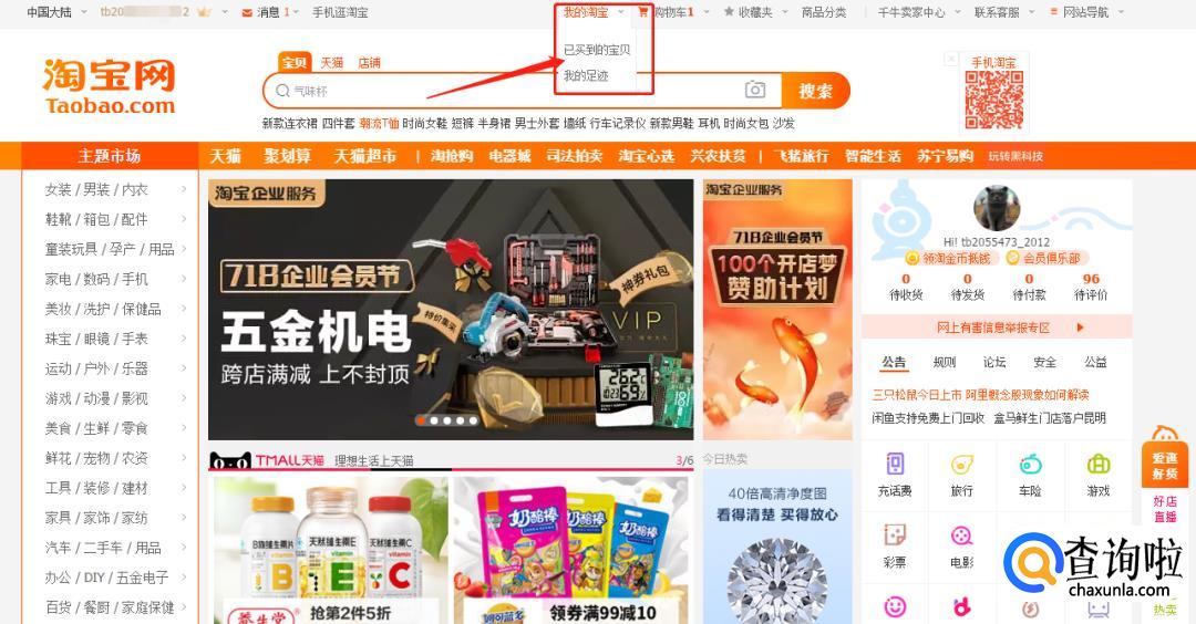 登录成功后,找到浏览器顶部的“我的淘宝”菜单栏,点击进入【已买到的宝贝】页面,这一步就进入买家个人中心,你将会看到你之前购买过的商品明细。