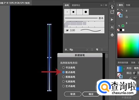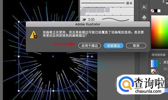 散点画笔选项调整完成之后点击确定,在提示弹框中点击“应用于描边”