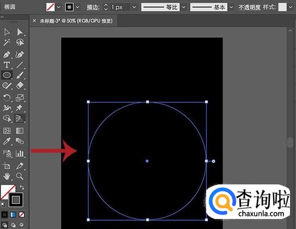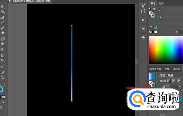打开电脑中的AI软件创建一个黑色背景色的画板,然后绘制一个线条,将填充给关闭,然后添加一个渐变色的描边。
