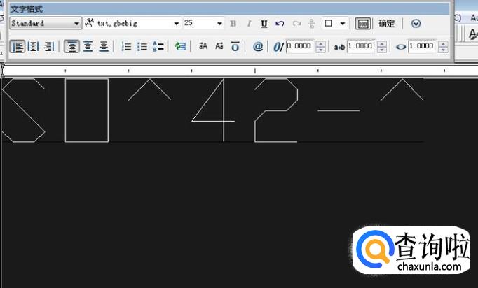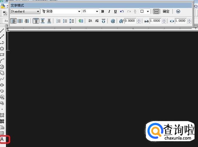 假设我需要输入硫酸根离子的分子式。点击页面左侧工具栏里的“A”图标(多行文字命令),在图中指定输入范围后,即出现文字输入框和“文字格式”工具栏。