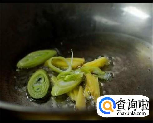 锅里到油烧热,放入生姜片和葱段炸香,把生姜片和葱段捞出来,把基围虾放进去小火慢慢的炸。