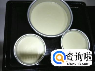 将蛋白三分之一倒入蛋黄糊里拌匀,再将拌匀的糊倒入剩下的蛋白里拌匀,倒入模具,轻震出气泡即可。