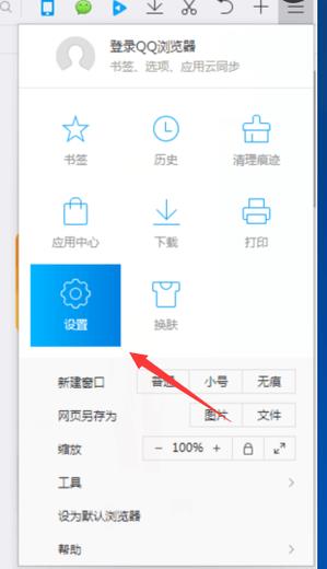 打开qq浏览器并找到设置。