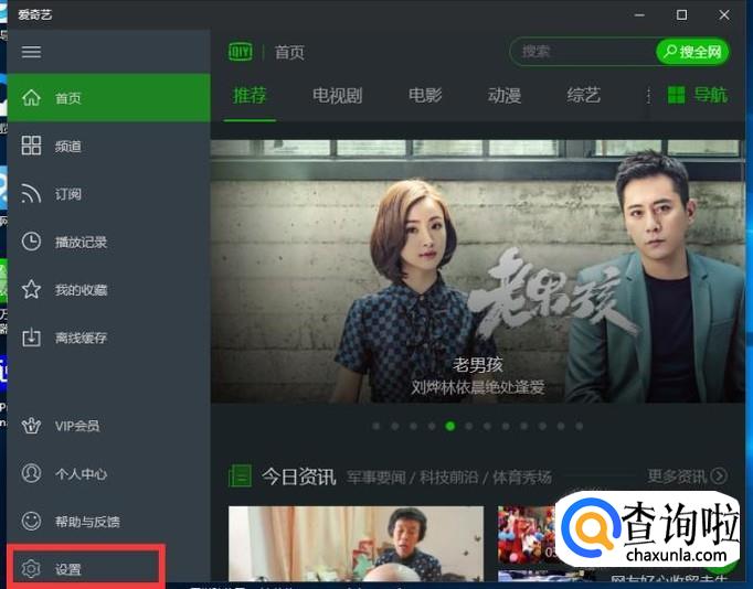 打开爱奇艺后,找到左下角的设置,点击进去。