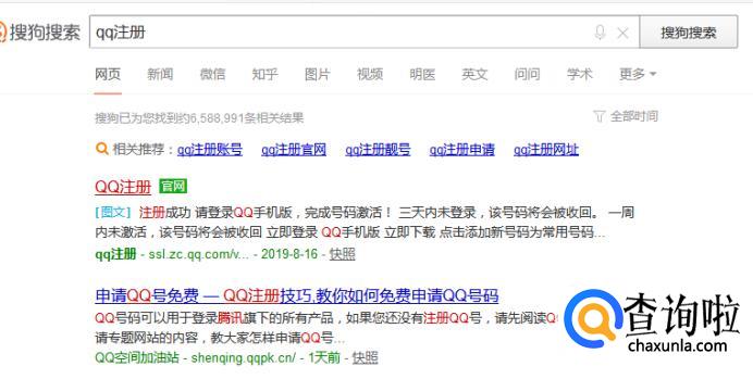 在搜狗搜索里面输入“QQ注册”,单击进入。