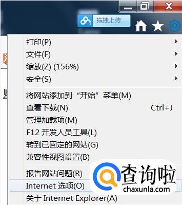 在第一次注册成功之后,找到浏览器右上角的设置-Internet选项。