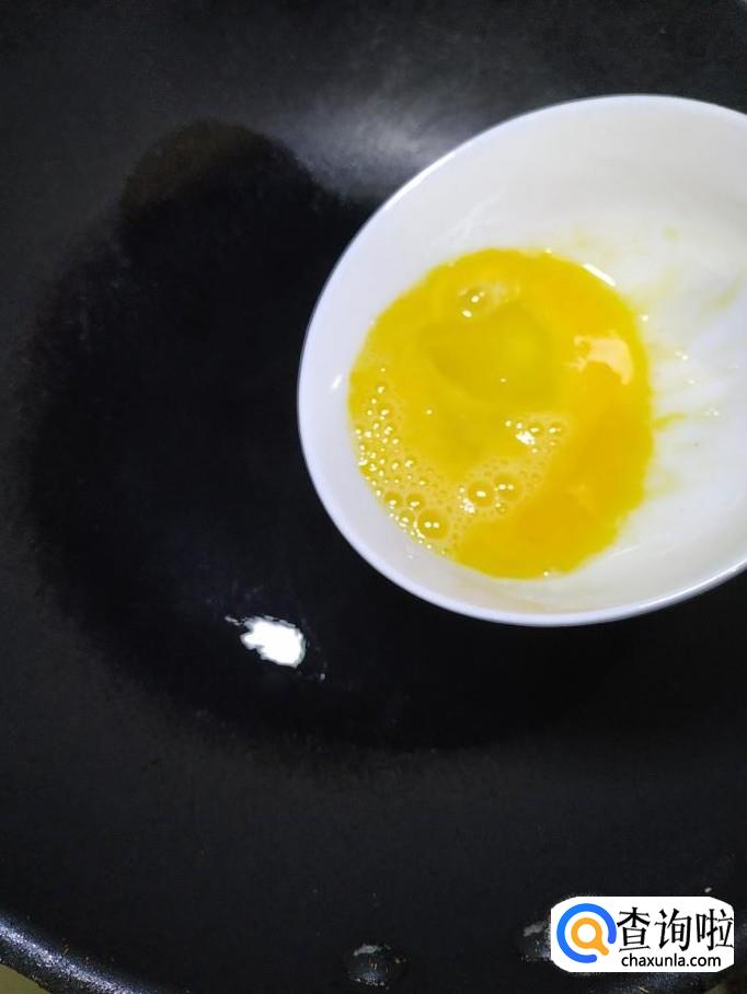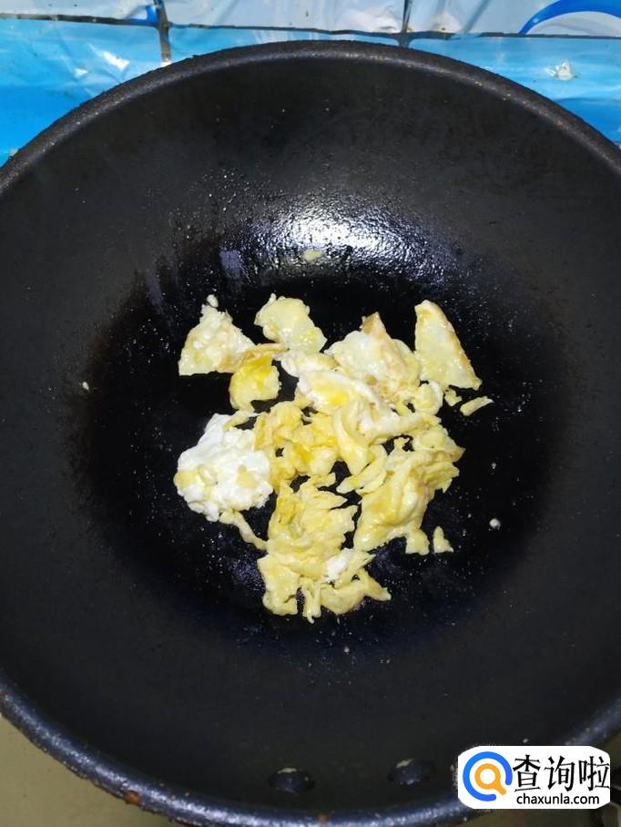 炒锅中放入适量油,油热后,将鸡蛋液倒入锅中炒熟,盛出备用。